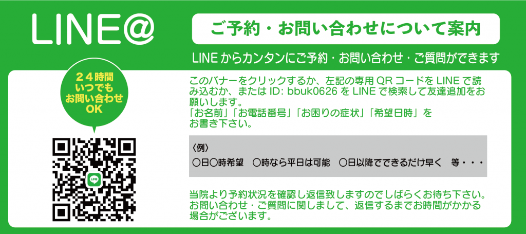 ※施術中はお電話に出られません。携帯電話(末尾9403)で折り返しご連絡いたします。