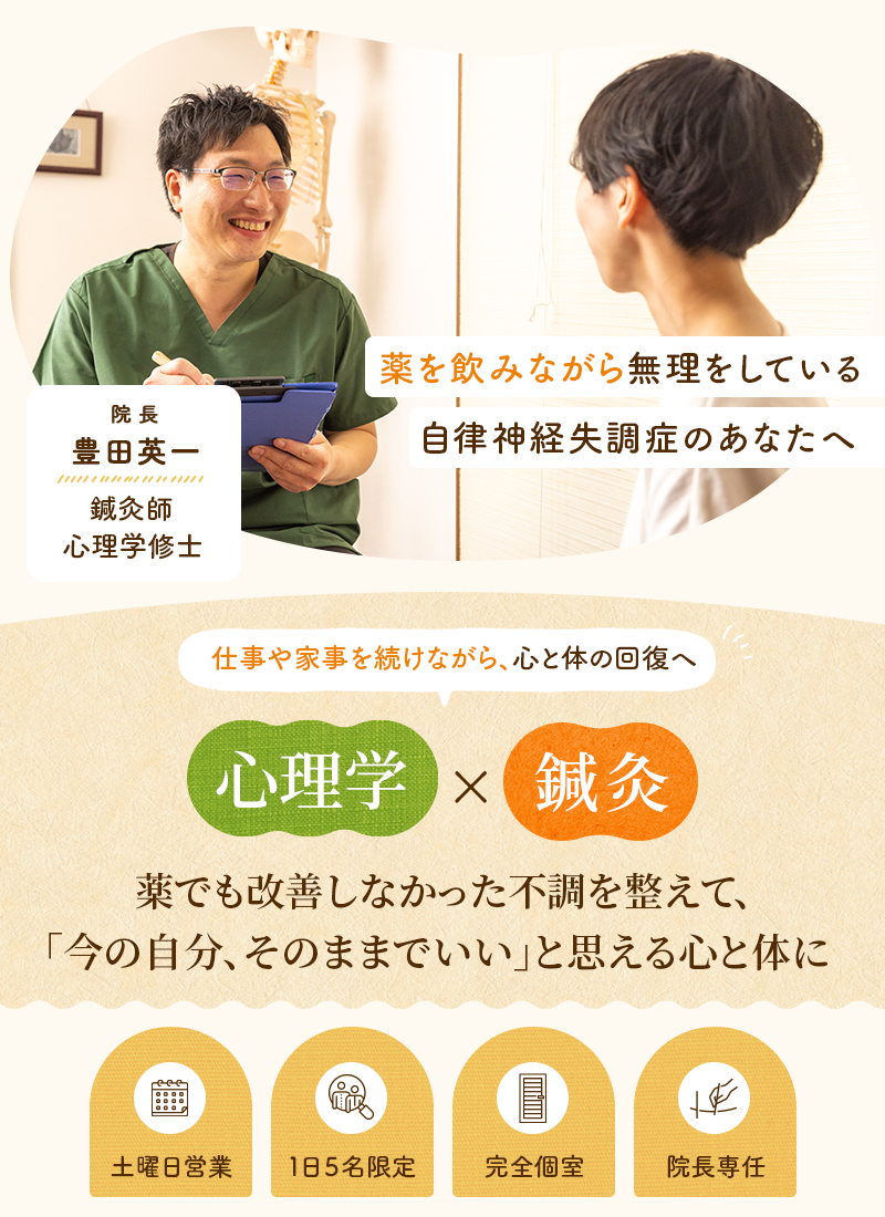 その後は、十分な時間をかけた鍼灸施術で自律神経を整え、心と体を安定へ導きます。