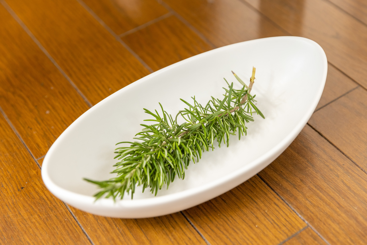 ローズマリーは、「精神を安定させる効果」があります。毎朝、庭から新鮮なローズマリーを採って、ベッドの下(お顔近く)においています。