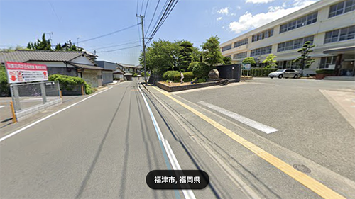 右手の福間中学校を越えて、さらに直進してください。